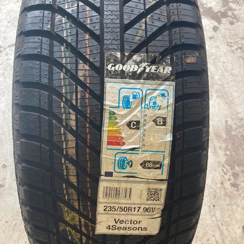 Sælger 4 stk. Goodyear Vector 4Seasons helårsdæk i størrelsen 225/55-17.