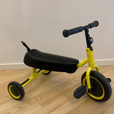 Scratch Europe Zebra Balance Bike 2-in-1. Sædet kan vendes til 2+ år og 3+ år. Trænger til luft i dækkene