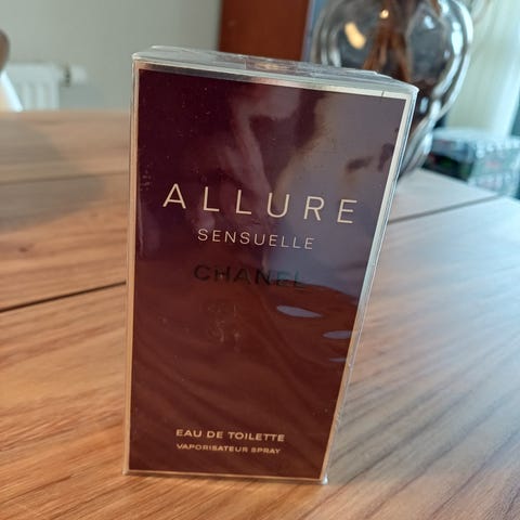Chanel Allure parfume 100 ml. Flakonen er rektangulær i klart glas med gylden væske og guldfarvet låg. Velegnet som duft til daglig brug eller særlige lejligheder.