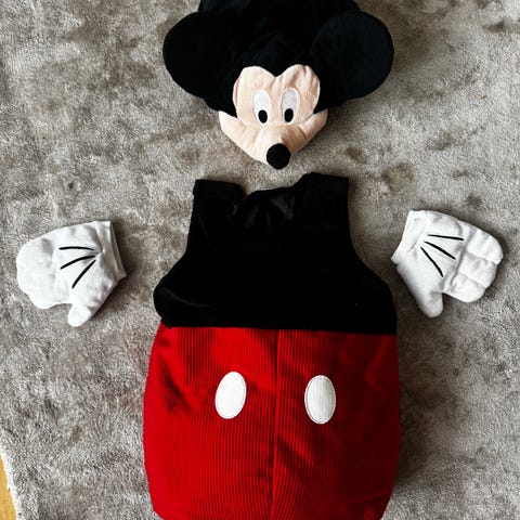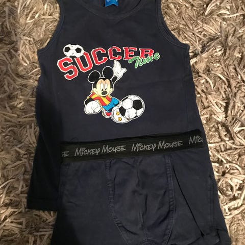 Mickey Mouse sæt bestående af langærmet body og tilhørende bukser i størrelse 50. Der medfølger også en lille matchende hue med “Mickey Mouse ører”.