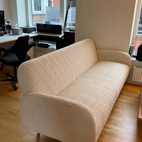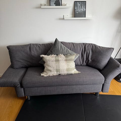 The sofa is in great overall condition, with only a light, faint discolouration on the seat cushion. It is barely noticeable in everyday light and does not affect the use or comfort. Please see the close-up photo for reference.