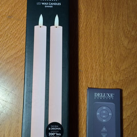To Krone lys med bevægelig flamme. Pris 30 kr.