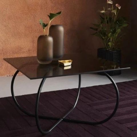 SINO Magazineholder har ligesom resten af serien en bordplade i mørkt marmor samt et stel i messing eller sortlakeret stål. Stellet er under bordpladen formet i en organisk bue som giver plads til opbevaring af magasiner og bøger.