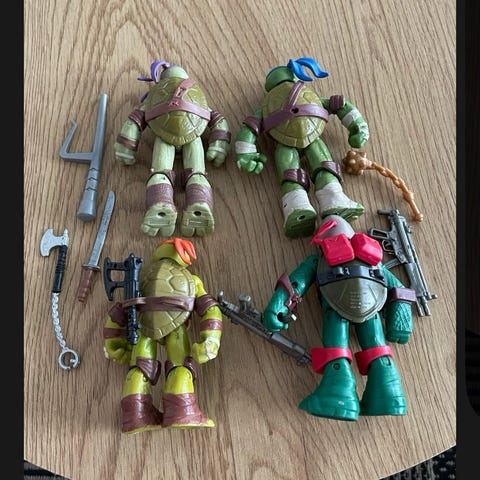 Ninja Turtles actionfigurer og køretøjssæt. Sættet består af flere figurer fra Ninja Turtles-universet samt forskellige køretøjer, herunder et større køretøj og mindre motorcykler/buggyer. Figurerne forestiller blandt andet skildpaddeheltene og andre karakterer fra serien. Egnet som legetøj eller til samling for børn, der kan lide Ninja Turtles og actionfigurer.
