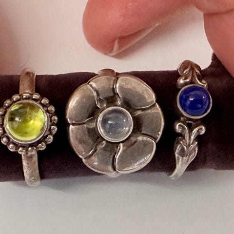 Georg Jensen ring til kvinde i sølv med halvædelsten. Ringen har en skulpturel opbygning af blanke sølvkugler kombineret med mørke sten, som giver et markant og tredimensionelt udtryk. Velegnet som smykke til både hverdag og fest. Designet er karakteriseret ved organiske former og en samlet top, der fylder godt på fingeren. Materialer: sølv og halvædelsten.