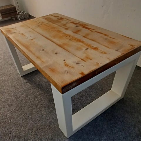 Pladen ligger løst på stellet og kan derfor placeres på andet stel eller anvendes til andet kreativt i indretningen.