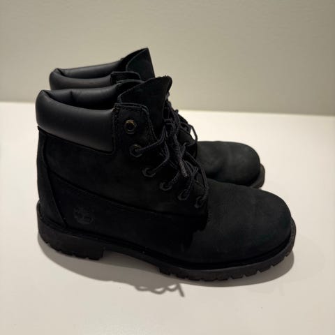 Timberland børnestøvler i str. 35 til unisex. Støvlerne er sorte med to velcrolukninger over vristen for nem af- og påtagning.