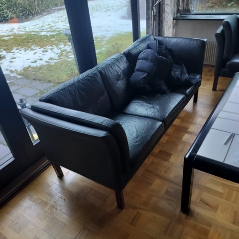 Flot og velholdt sofasæt Monty i sort læder sælges.