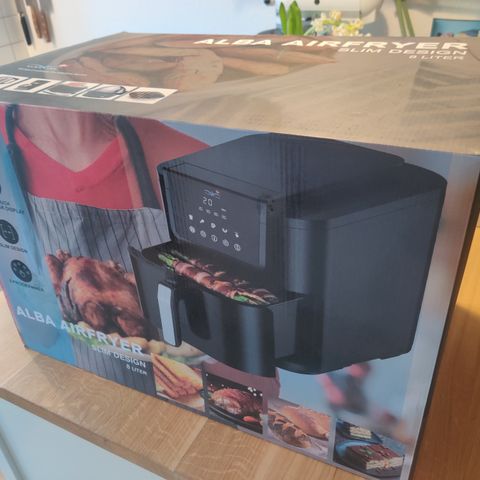Melitta airfryer i sort. Enheden har digitalt display på fronten med touchknapper til temperatur- og tidsindstilling samt forskellige forudindstillede programmer. Velegnet til tilberedning af fx pommes frites, kød og grøntsager med begrænset brug af olie. Strømtilslutning med ledning på bagsiden. Kompakt model, der kan stå på køkkenbordet. Ny har aldrig været brugt! Kan sendes mod forud betaling med mobil pay.