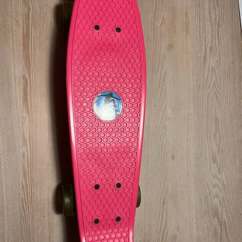 Skateboard plast cruiser i sort med struktur på oversiden for bedre fodfæste. Undersiden har forstærkede ribber i plast. Monteret med farvede hjul i blå, grøn, gul og rød samt metaltrucks. Velegnet som lille cruiserboard til kørsel på jævne underlag.
