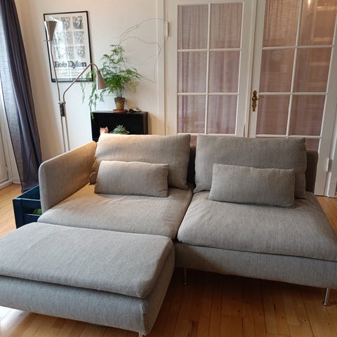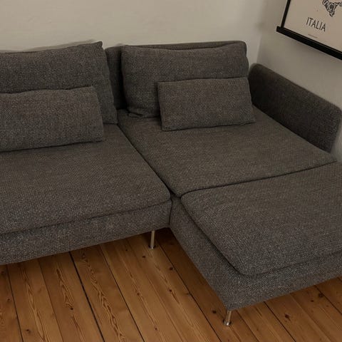 Söderhamn IKEA sofa med chaiselong i mørkegråt stof.