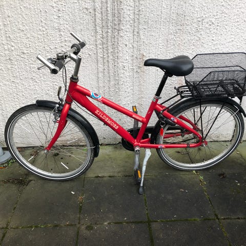 Hånd + fodbremser, ringeklokke, flot kurv, lygter og lås.