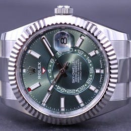 Sky-Dwelleren som blev lanceret i 2012, med teknologi beskytte af intet mindre end 14 patenter, er vel nok Rolex mest teknisk avancerede ur til dato. Urets design er yderst sofistikeret med selve kassen i Rolesor, den flotte grønne skive med hvide markeringer og features som bla. aflæsning af to tidszoner på samme tid, månedsangivelse og “annual calender”.