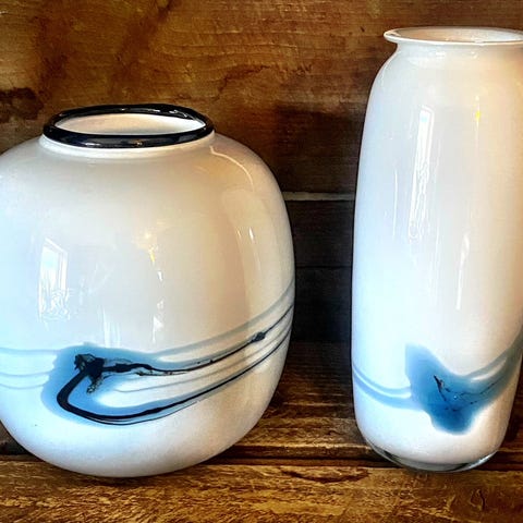 * Holmegaard; Sjælden buttet vase - Atlantis med blå striber af Michael Bang