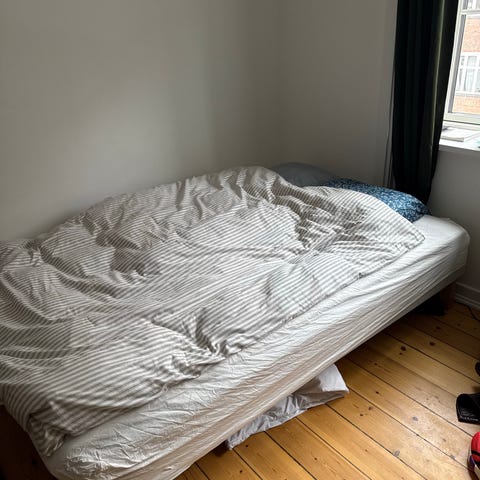Seng 140x200 cm – brugt Sælger brugt seng i god stand. ✔ Mål: 140 x 200 cm ✔ Stabil og komfortabel Topmadras fås gratis med hvis dette ønskes. Sælges for 500 kr. Skal afhentes søndag d. 1. marts. Bor på 1. sal. Matthæusgade 48D, 1666 København V.