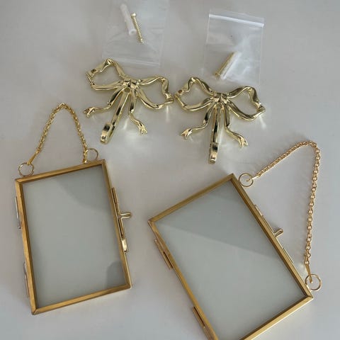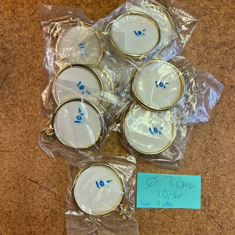 Oval billedramme i metal i guldfarve. Rammen måler ca. 9 x 12 cm og leveres i plastpose. Velegnet til små fotos eller billeder, kan hænges op i den øverste ophængsring. Har 20 stk
