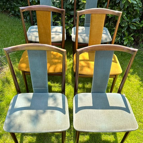 Spisestole af Henning Sørensen 1968 til renovering og polstring 4 stk haves pris pr stk