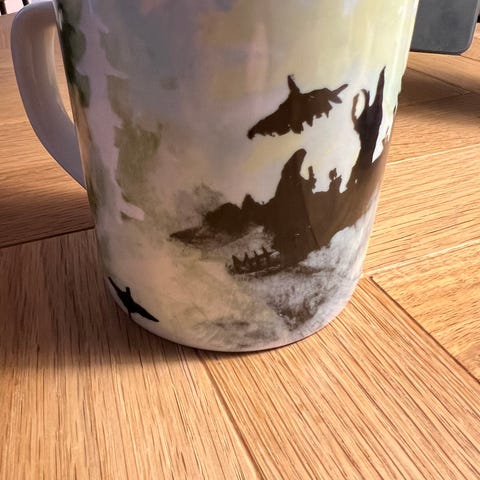 Royal Copenhagen krus hvid med flerfarvet dekoration 2003