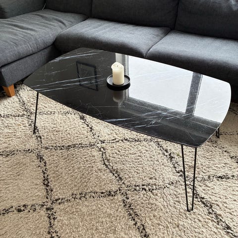 Fint sofabord med sort marmorplade.