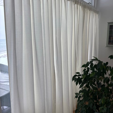 IKEA gardiner med mønster. Gardinerne fremstår i en neutral, lys nuance med vævet bladmønster. Velegnet til ophæng i stue, soveværelse eller andre rum, hvor der ønskes afskærmning og dæmpning af lys. Tekstilgardinerne kan bruges sammen med almindelig gardinstang eller skinne, afhængigt af ophængstype (ikke vist). Egnet til almindelig indendørs brug i hjemmet. De er fra Gardinbus med Winerlæg med stang