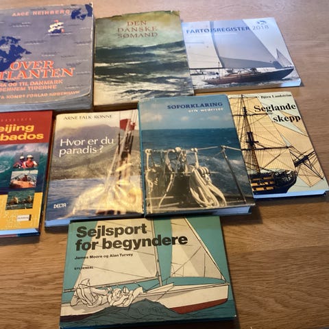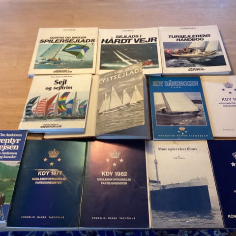 Samling af forskellige bøger om sejlads og sejlerskole. Bøgerne omhandler blandt andet grundlæggende sejlads, lær-at-sejle materiale, første sejlads, samt generelle emner om både, sejl og søfart. Velegnet til læsere, der ønsker viden om sejlads, teori og praktiske færdigheder på vandet. Flere forskellige titler og forfattere indgår i samlingen.