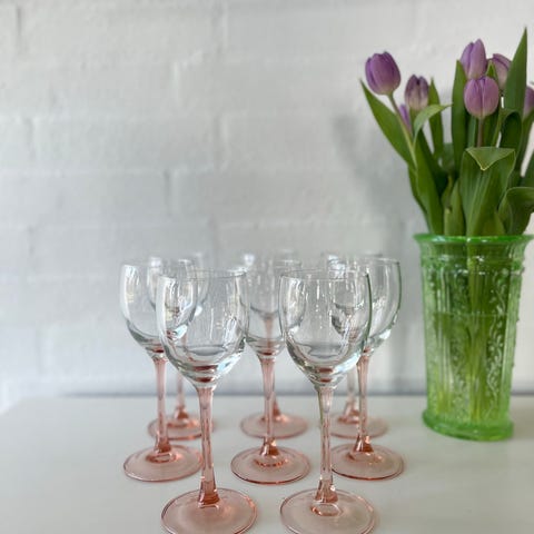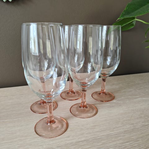 8 smukke vinglas fra Luminarc med lyserød stilk. Sælges samlet for 200 kr. er i Fredericia.