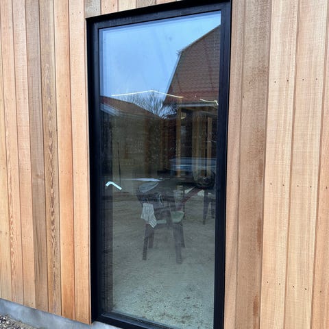 Terrassedøren er i god stand men med diverse brugstegn (Se billeder) Døren er med cylinderlås, låsen medfølger ikke.