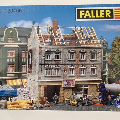 Flot iøjefaldende Faller model af brændende bindingsværkshus med indbygget lysimitation af igangværende brand (elektronisk Faller-artikel). Lyset flakker som ild med gule/orange/røde nuancer. Flot virkning i et anlæg.