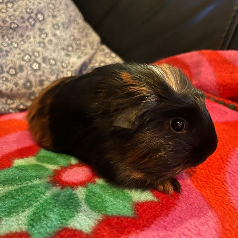 Smuk Marsvineunge, han brun, sort og hvid.