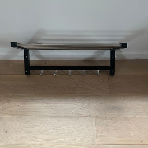Smart møbel til entre eller bryggers. Knagerække og bænk m skoopbevaring. I rigtig pæn stand. Kan IKKE sendes.