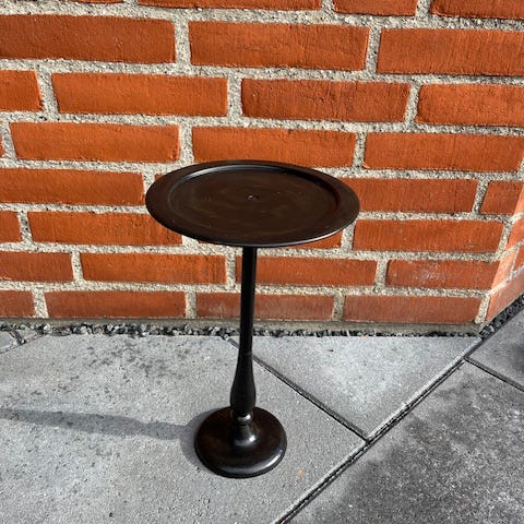 Glas skål på metalstativ i grønligt glas. Skålen har bred kant foroven og smal bund, som hviler i et sort metalstativ med tre ben. Egnet som dekoration, planteopsats eller til opbevaring af mindre genstande i hjemmet. Materialer: glas og metal. Farve: transparent grønlig glas med sort stativ. AI 😉