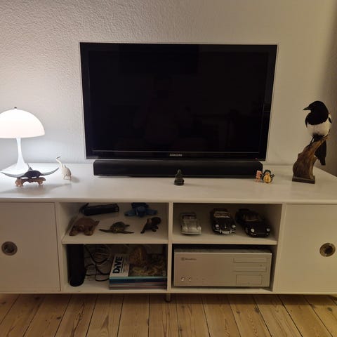 Et designer TV bord i bedste kvalitet, med praktisk opbevaring og to hylder.