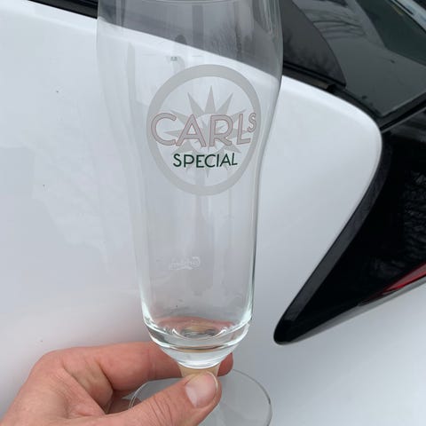 Carlsberg ølglas i klart glas. Glas med trykt Carlsberg-logo på siden og stilkfod. Velegnet til servering af øl eller andre kolde drikke.