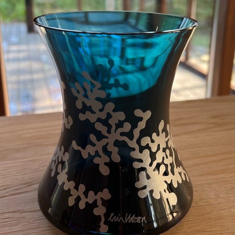 Mundblæst klart glas m/dekorationer i matsølv, formgivet af Lin Utzon for Rosendahl i 2007.