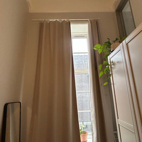 Jeg har også en anden annonce med beige mørklægnings-gardiner, 300cm
