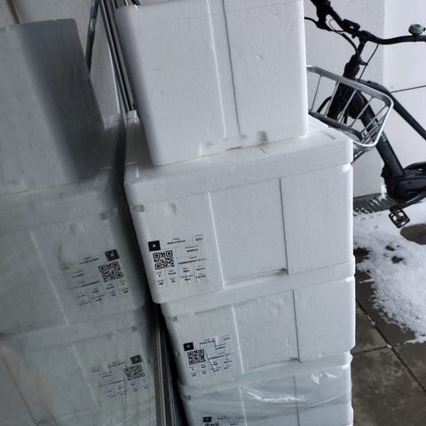 Flamingokasser i hvid. Kasserne kan anvendes til opbevaring, isolering eller transport, f.eks. af madvarer, planter eller andre genstande, der har behov for beskyttelse og isolering. Velegnet til brug i have, garage eller kælder, hvor der er behov for lette og isolerende kasser.