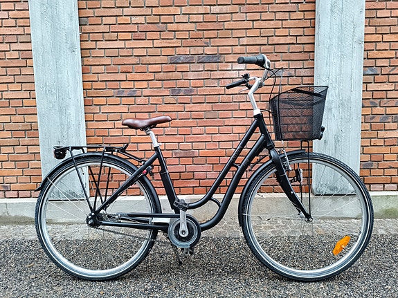 Total tip top nyistandsat, smurt, strammet og justeret kvalitetscykel i super flot stand. Cyklen står nærmest fuldstændig som ny, stort set uden brugsspor. En cykel der er blevet passet rigtig godt på. Alt virker 100 %, og cyklen kører og fungerer som fra fabrikken, uden mislyde, defekter, slør eller skavanker nogen steder. Kraftige punkterfri dæk. Nyt bagdæk, ny frisk kæde, nyt Shimano gearnav, ny rummelig kurv, ny sadel, ny bagagebærer, ny kædeskærm og ny klokke. Let, hurtig og rustfri model, med alustel og aluhjul. Indvendige gear. Lav indstigning. Fastmonterede lygter, med friske batterier. Håndbremse for og fodbremse bag. Køreklar og komplet med kurv, klokke, bagagebærer, støttefod, lygter, reflekser og fastmonteret ringlås med nøgle. Behagelig rank, høj og flot kørestilling. Passer til høj som lav, og jeg indstiller styr og sadel så cyklen passer lige til dig. Str. 50 cm. 7 gear. Stelnr.: WMB50603H. (Ved henvendelse angående cyklen, for hurtigere respons, sms eller ring venligst på 22 13 21 30, eller benyt messenger ved at trykke på "gå til varen" knappen).