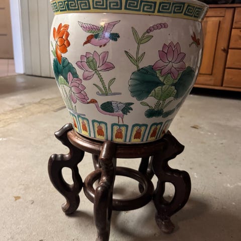 Porcelænsfigur kinesisk tepotte i glasmonter