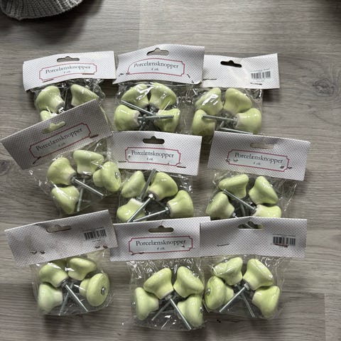 Porcelænsknopper greb til skabe og skuffer. Klassiske porcelænsgreb med medfølgende skruer, velegnede til montering på skabslåger, kommoder og skuffer. Passer til indendørs brug i f.eks. køkken, badeværelse eller møbler, hvor der ønskes en enkel porcelænsknop som greb.