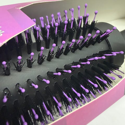 Wet Brush Break Free rundbørste i sort og lilla. Børsten har konkav børstedesign og plastspidser på børstehårene. Velegnet til fint til medium -tykt hår og kan bruges til fønstyling og formning af håret for at skabe volumen og struktur.