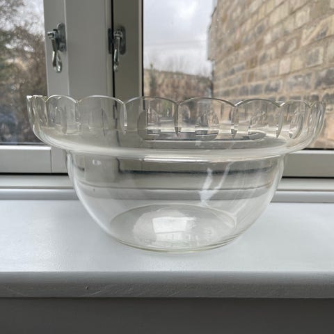 Smuk gammel skål, i lyserød/ rosa glas.