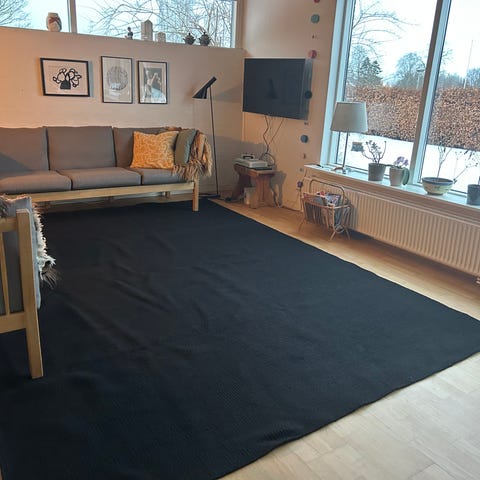Tæppet er skridsikkert og ligger perfekt på gulvet.