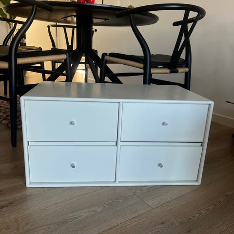 Lækre hvide Montana dash natborde helt nyy, ingen brugsspor. Sælges da vi ikke har plads i vores nye lejlighed.