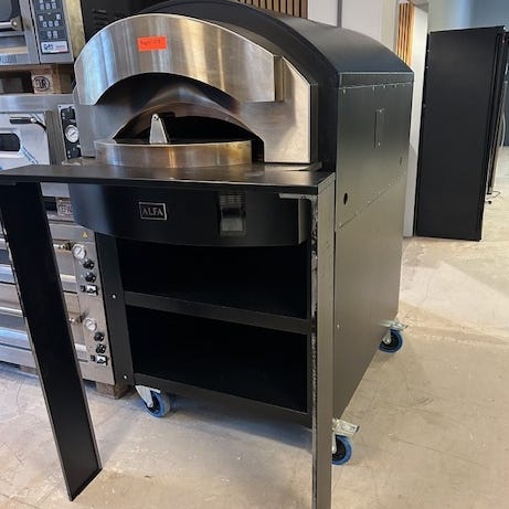 Izzo pizzaovn elektrisk med kobberfront og buet ovnkammer. Ovnens styring sker via digitalt betjeningspanel på fronten med temperaturvisning og regulering. Velegnet til professionel brug i pizzeria eller restaurant. Ovnens ydre er udført i metal med kobberkuppel foran og mørk metalbeklædning på sider og bagkant. Anvendes til bagning af pizza og andre ovnretter i erhvervskøkken.