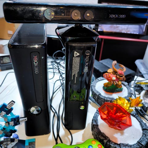 X - box 360 sensor og tilbehør og spillende som er på billedet. Jeg har haft den sat til strøm og den virker som det fremgår af bilet men skærmen følger ikke med.
