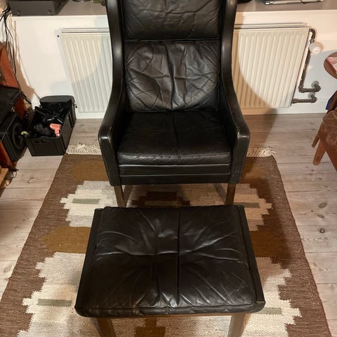 Læder lænestol, cognac farvet. Fabrikat ukendt.