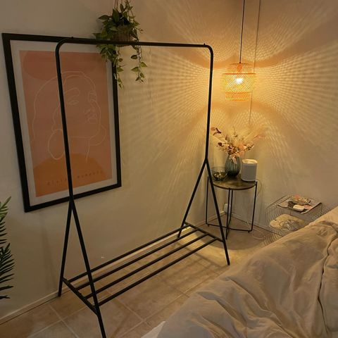 Garderobe stativ med masser af plads. Plads til sko forneden. Hylde foroven. Pulverlakeret.