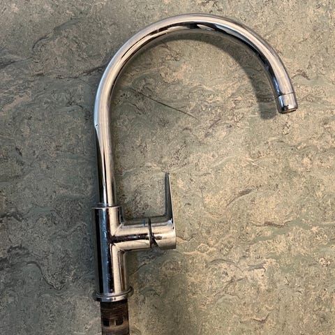Køkkenarmatur i krom med høj tud og to fleksible tilslutningsslanger. Armaturet er egnet til montering i køkkenvask eller bordplade. Klassisk et-grebs betjening til regulering af vandmængde og temperatur. Velegnet til almindelig brug i køkken eller bryggers, hvor der ønskes et standard blandingsbatteri i messing med kromfinish.