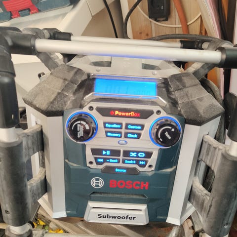 Andet håndværktøj, Bosch, Radio, Bosch GML Powerbox. Rigtig fin Håndværker radio.. Bosch GML 20. Med 360 grader højtalersystem. Med subwoofer der giver optimal lyd. Radiofrekvensområde FM/AM. Tilslutning 12V/SD/AUX/ og USB port. To integrerede 230V standardstikdåser belyst display ogbetjeningselementer. Er uden ladefunktion.
