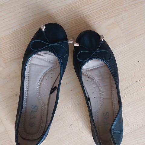 VRS ballerina sko i str. 36. Skoene er i en rosa farve med rillet/struktureret overdel og rund snude. Flad sål egnet til hverdagsbrug. Velegnet som lette sko til indendørs eller udendørs brug i mildt vejr.